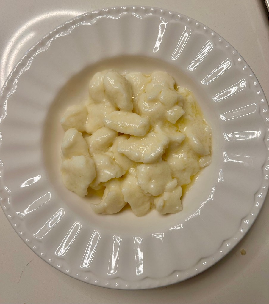 Il procedimento è molto semplice: si mescola la ricotta con il latte e un po’ alla volta si aggiunge la farina, sbattendo con una forchetta in modo che l’impasto diventi cremoso e non si creino grumi. Salate e regolate di farina, a cucchiaiate, se necessita di aggiungerne.