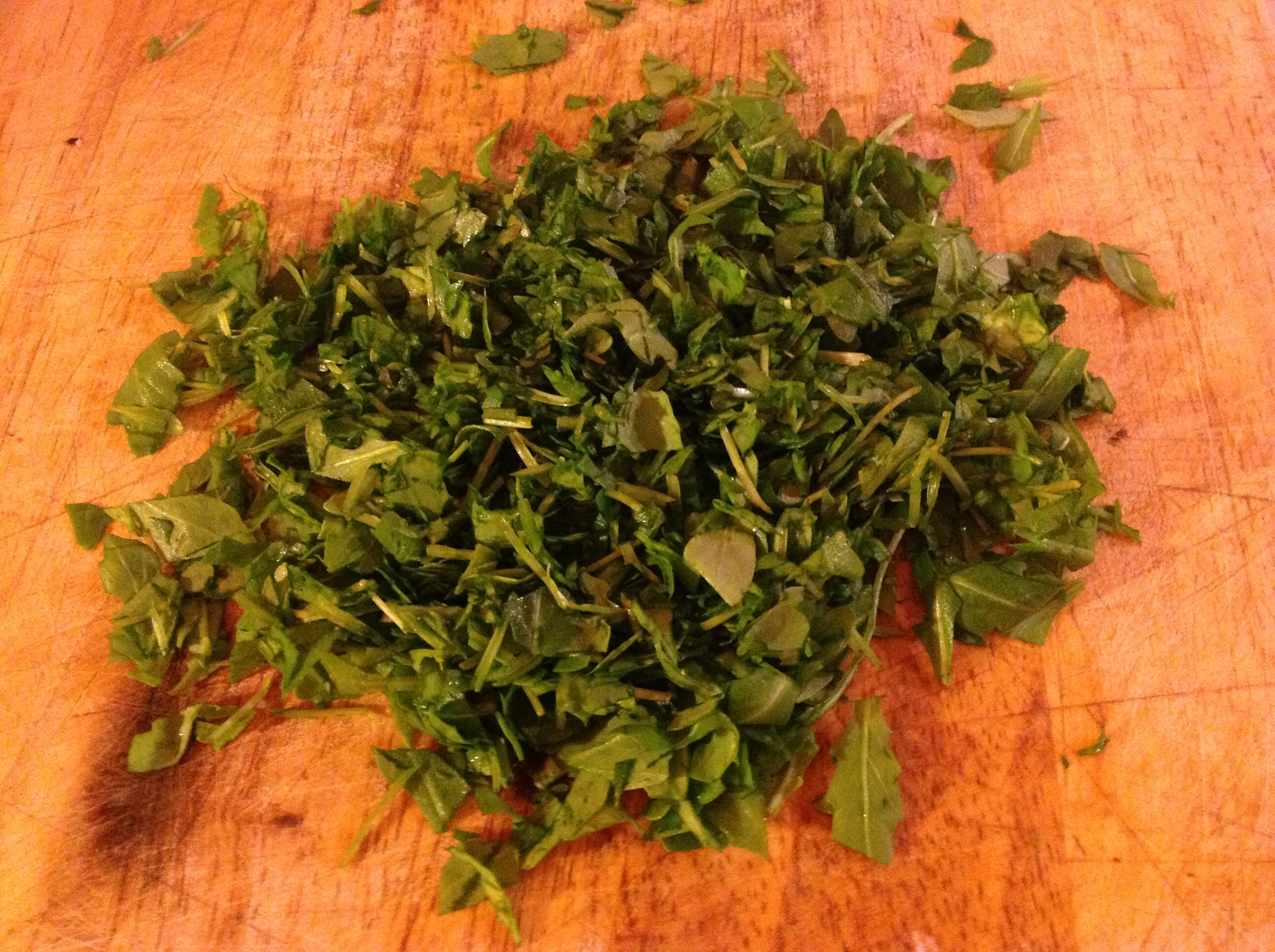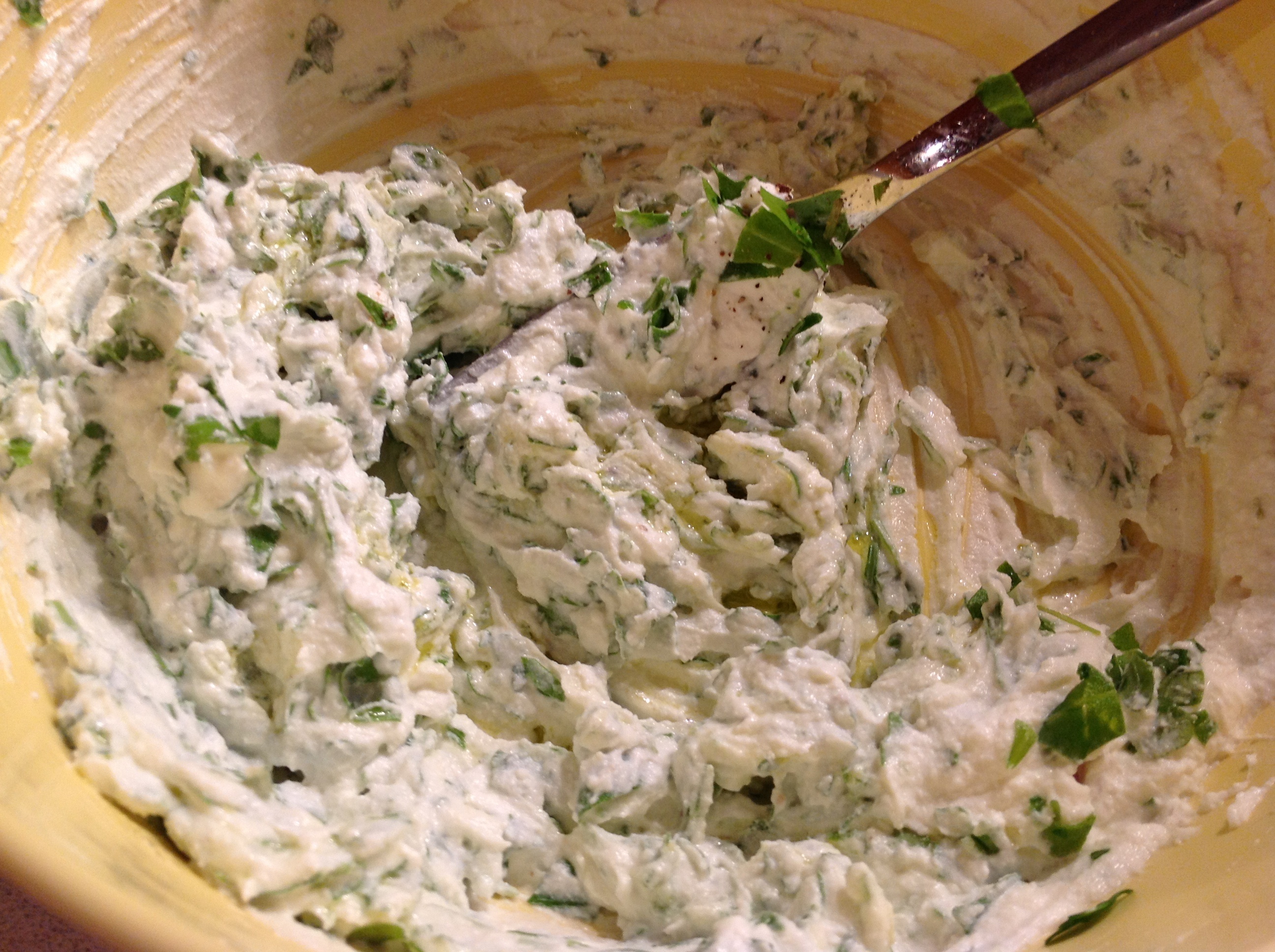 Sminuzzate la rucola e mescolatela alla ricotta, aggiungendo un pizzico di pepe e un filo di olio evo. Regolate di sale.