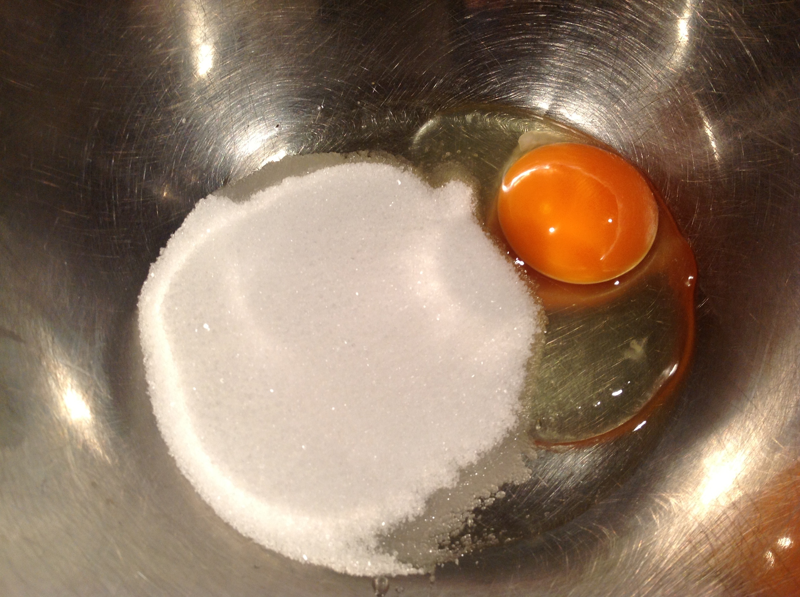 Preparate il ripieno, sbattendo per prima cosa l’uovo con lo zucchero.