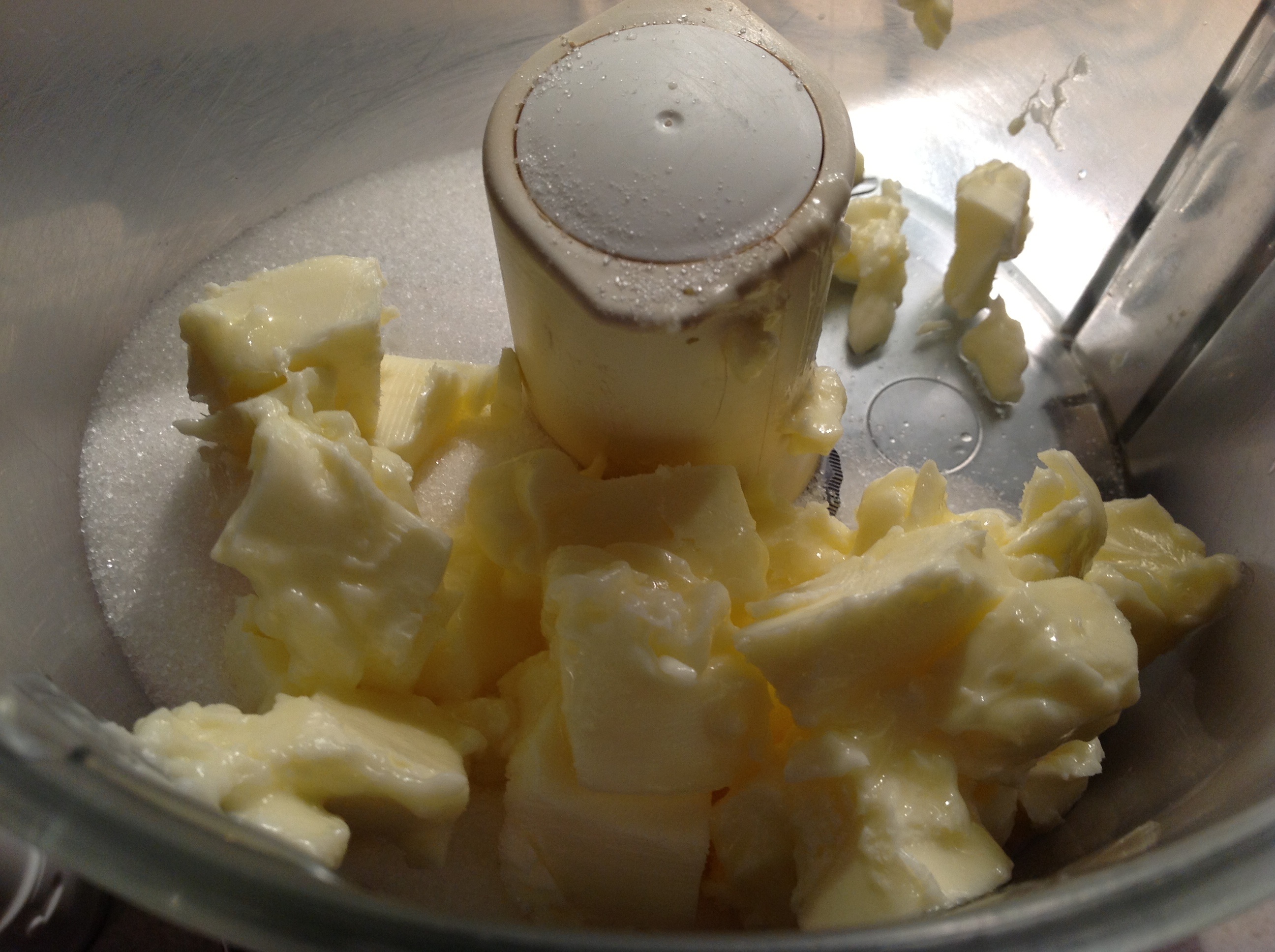 Sbattete nel robot il burro ammorbidito con lo zucchero.