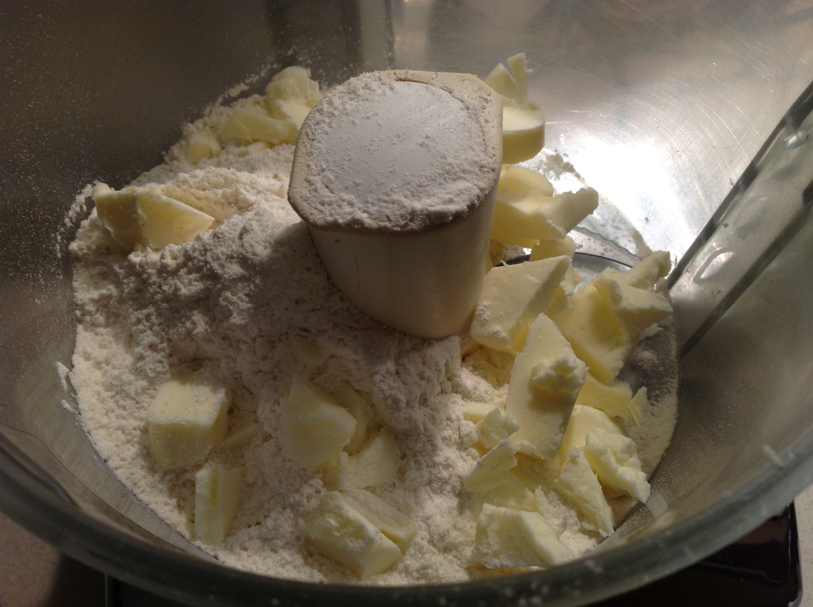 Per preparare la pasta brisè mescolate nel robot la farina con il burro a pezzetti appena tolto dal frigorifero.