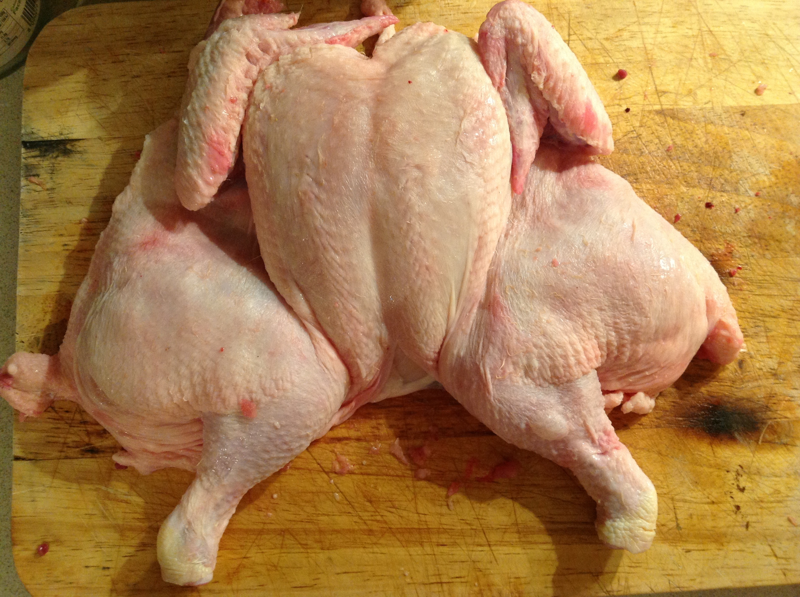 Tagliatelo lungo la schiena, apritelo e schiacciatelo bene con le mani.