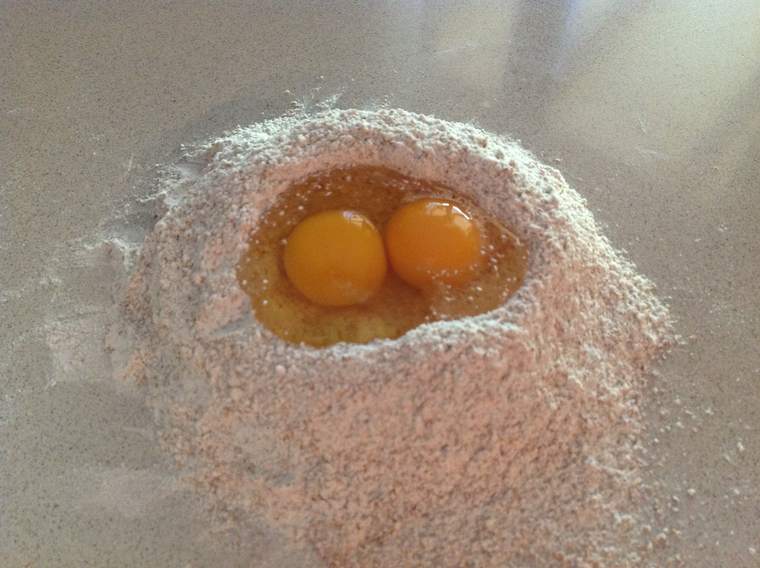 Nel frattempo preparate la pasta all’uovo integrale, miscelando la farina con le uova e un pizzico di sale. Aggiungete un cucchiaio di acqua se necessario.