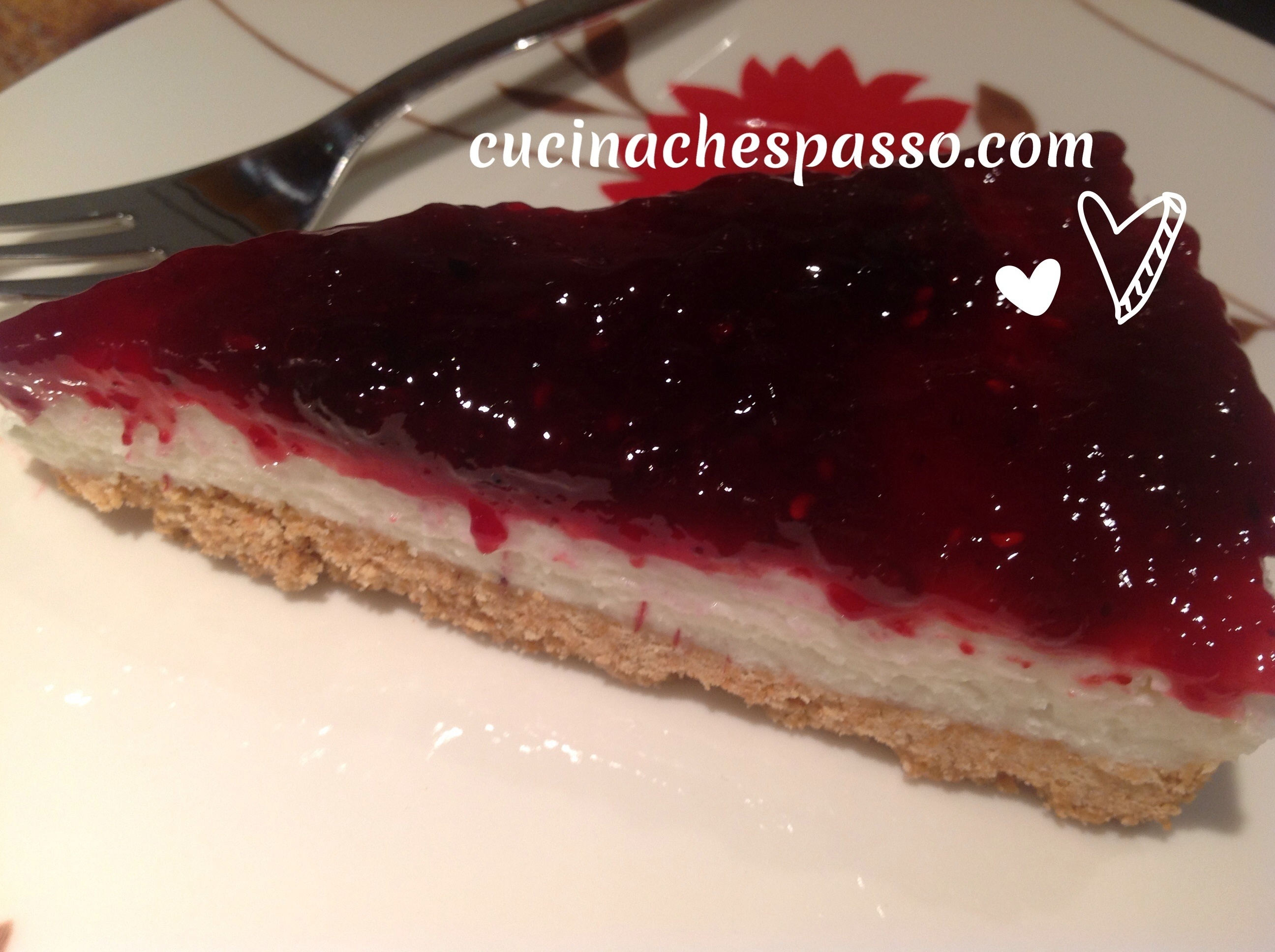 Io ho optato per una cheescake di ricotta (chissà come mai…ne avevo due portate a casa come ricordo dalla montagna!) con i frutti di bosco, senza cottura in forno.
