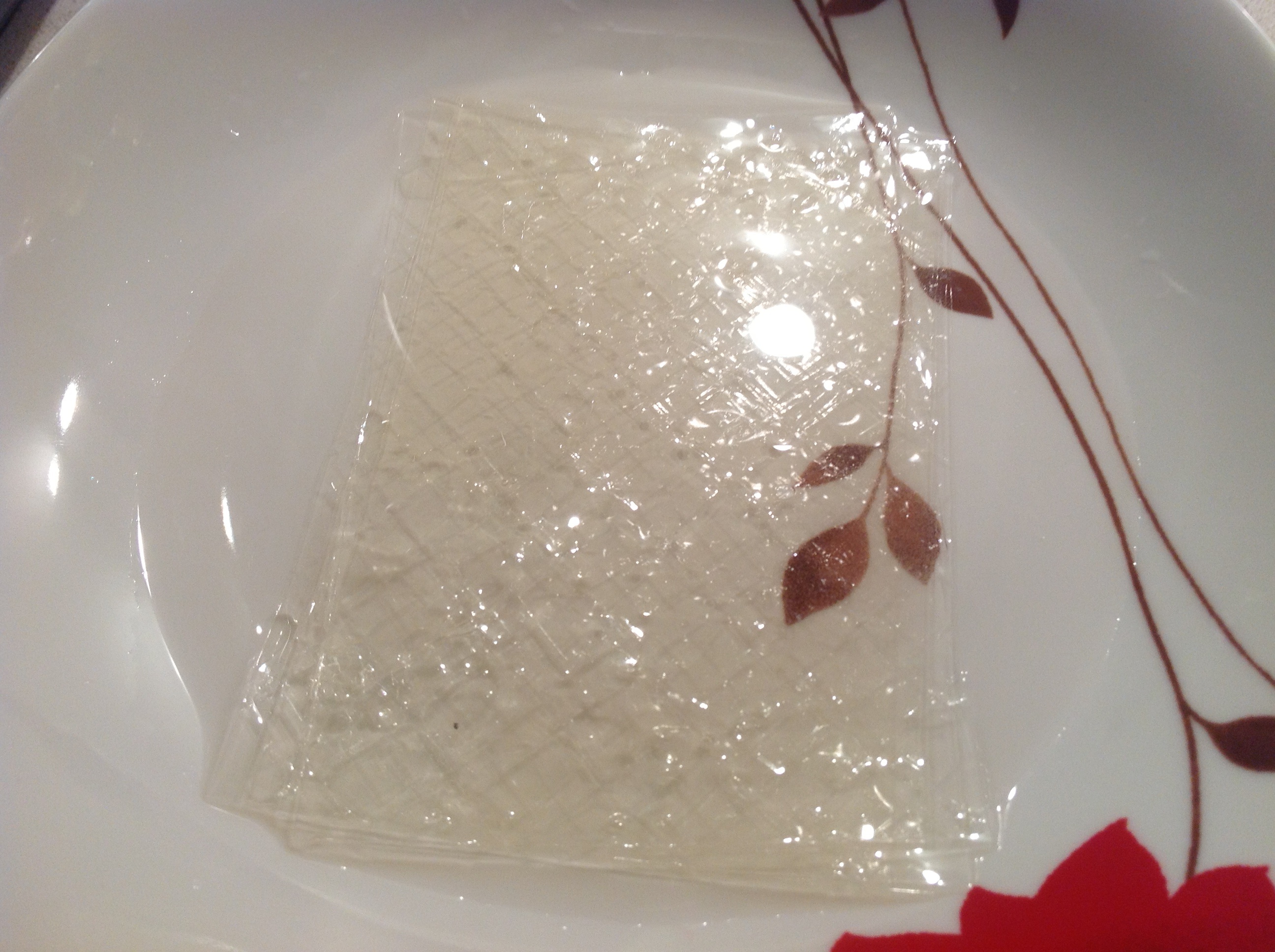 Immergete i fogli di gelatina in 4 cucchiai di acqua fredda per circa 10 minuti, ovvero fino a quando risultano ammorbiditi.