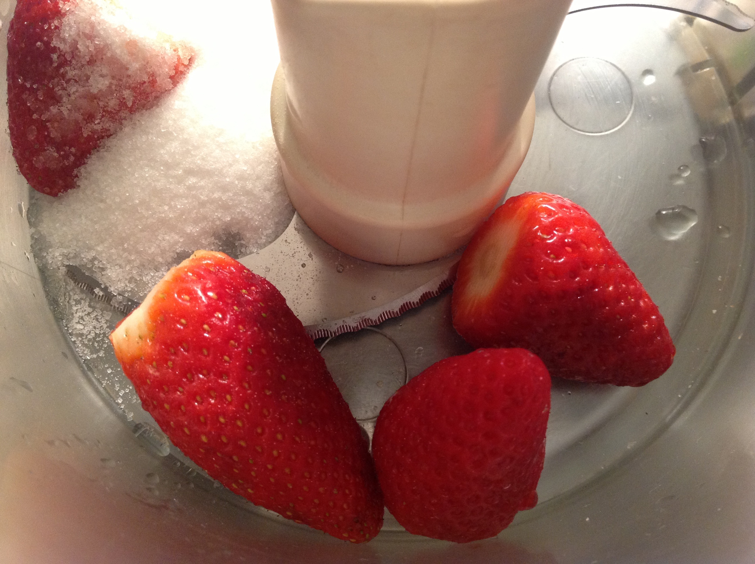 Frullate le fragole con metà zucchero e l’amido di mais.