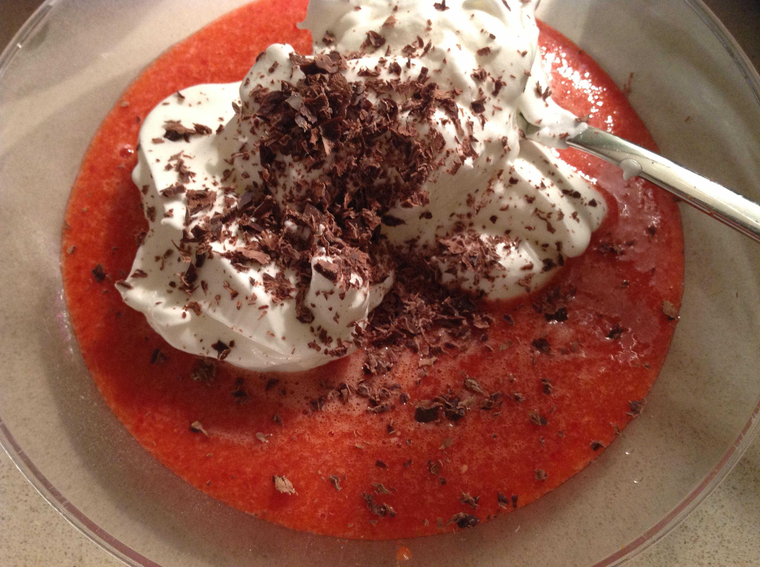 Mescolate delicatamente gli albumi con il frullato di fragole e il cioccolato.