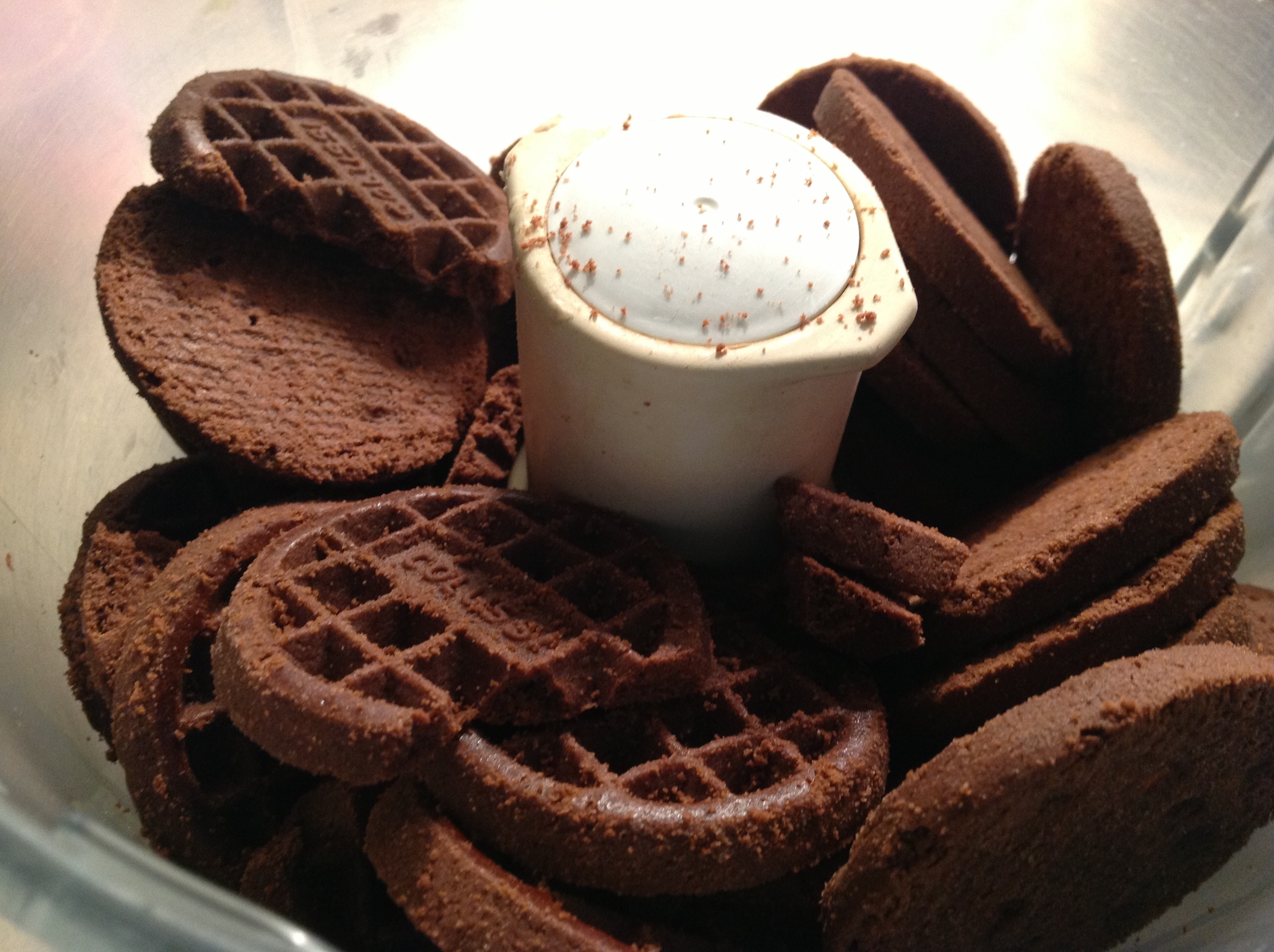 Tritate i biscotti e amalgamateli al burro fuso in microonde e al miele.