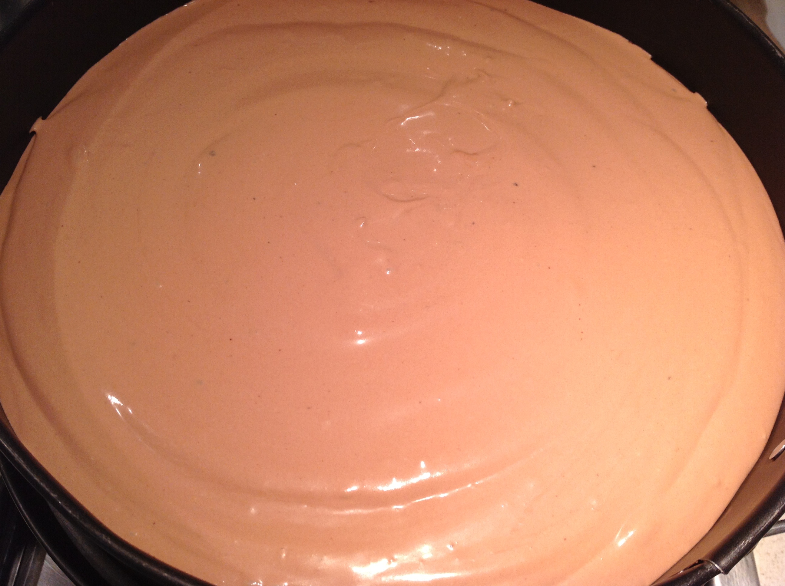Montate la panna ben ferma e amalgamate all’impasto con una spatola, mescolando dal basso verso l’alto fino ad ottenere una mousse chiara e compatta, da versare sopra la base di biscotto.