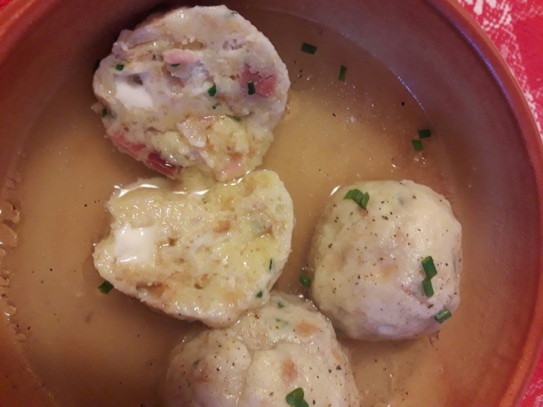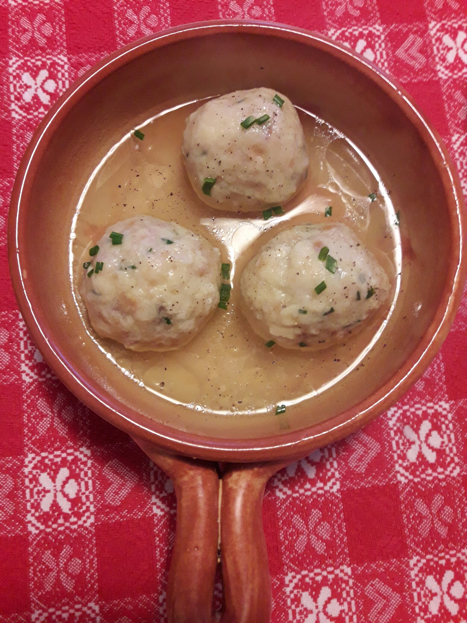 Il tocco finale è l’erba cipollina e una spolverata di pepe. Di sicuro, se avete bisogno di un confort food, i canederli sono insuperabili 😋.