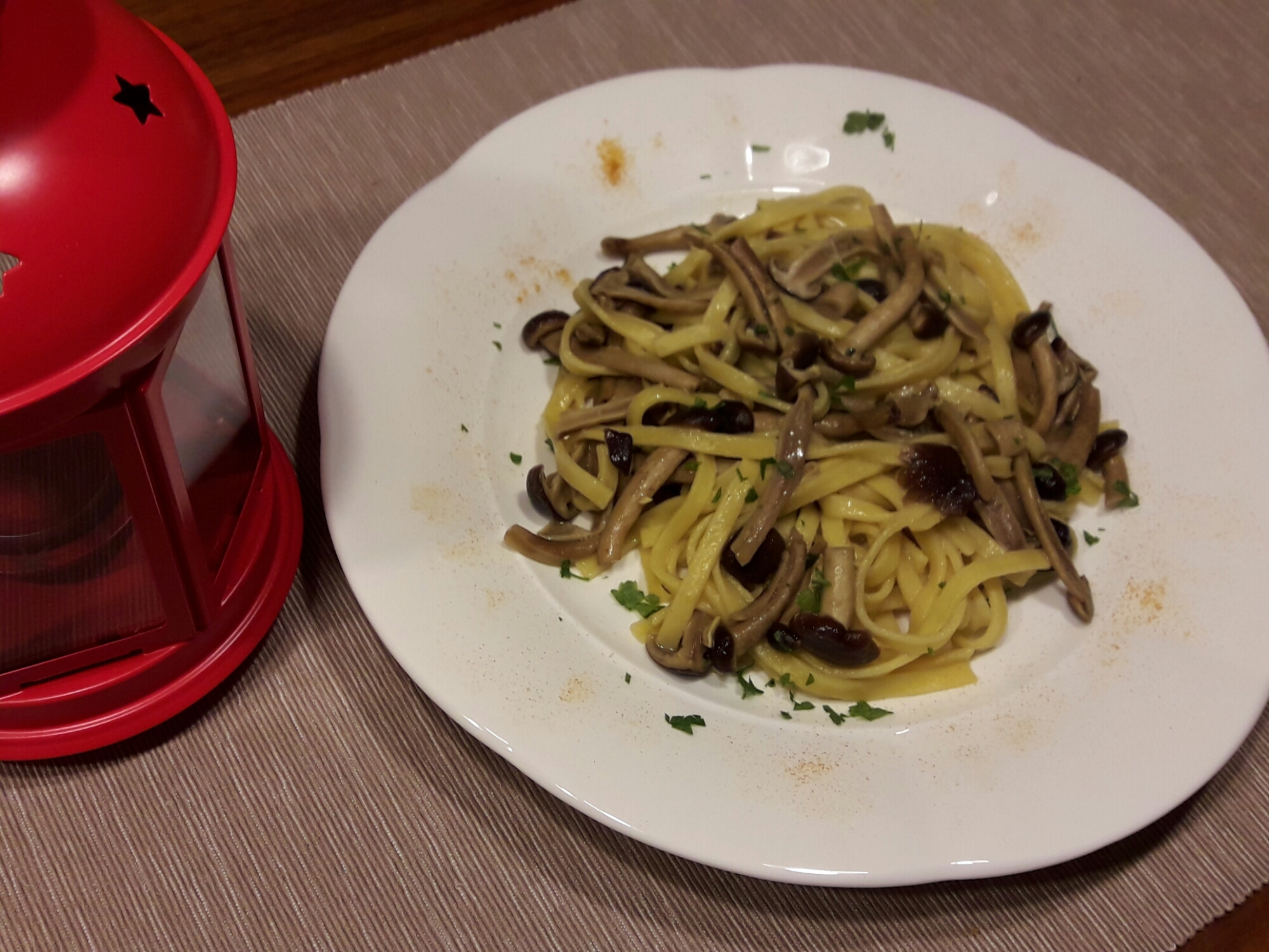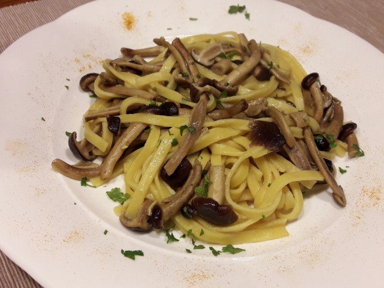 Io cucino le tagliatelle ai funghi porcini, con aglio, panna e prezzemolo…queste però sono veramente da provare!