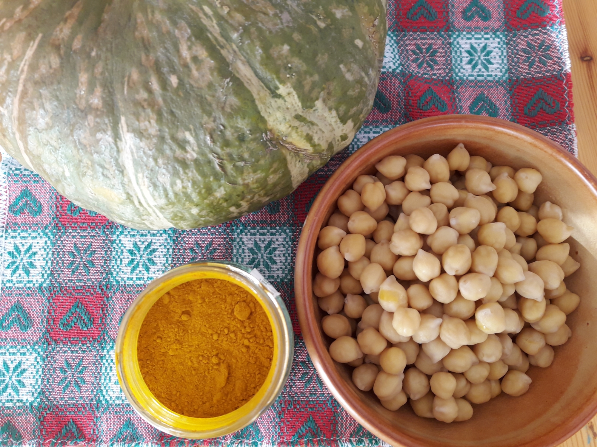 Fate cuocere per circa mezzora, fino a quando la zucca si sfalda, quindi frullate il tutto e aggiungete i ceci interi. Spolverate con la curcuma e fate insaporire ancora a piacere, dosando il brodo fino a raggiungere la cremosità che preferite.