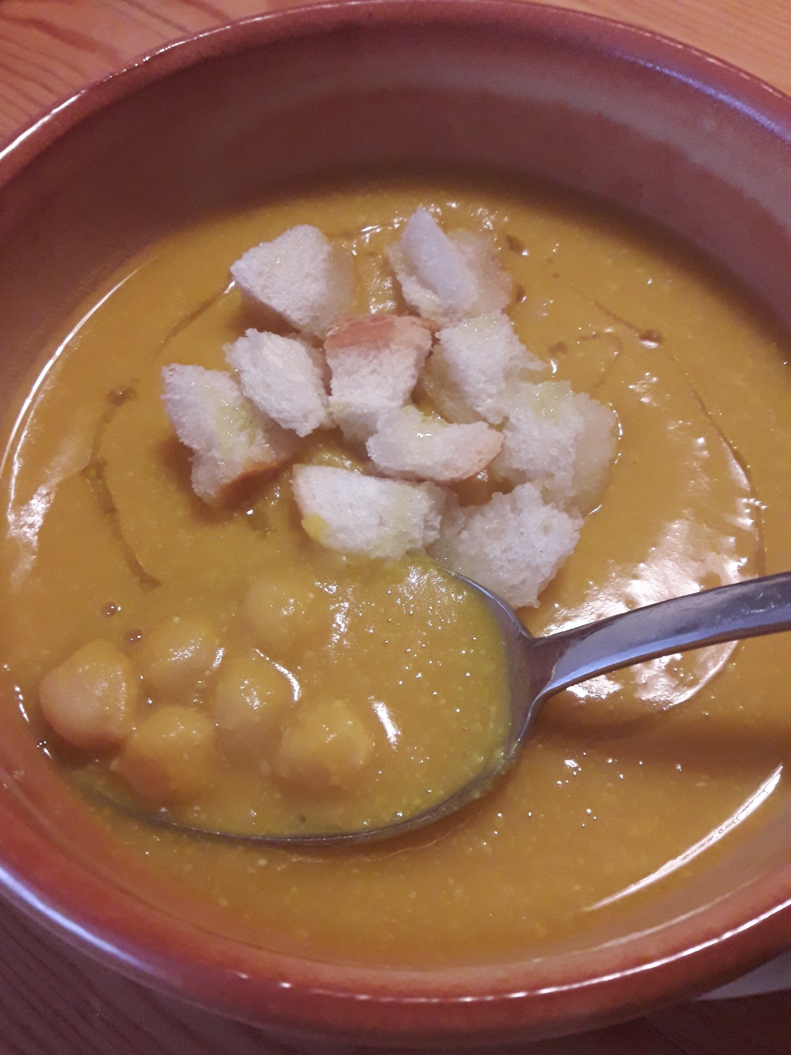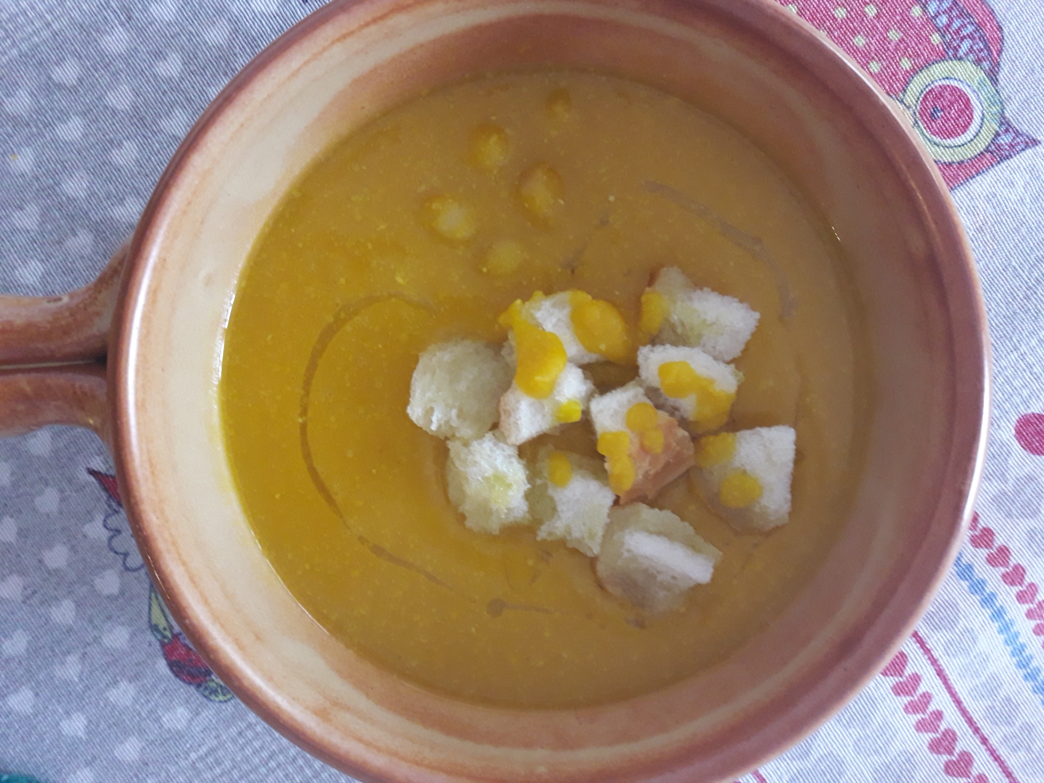Potete servire la zuppa con dei crostini di pane, abbrustoliti in padella con un filo d’olio.