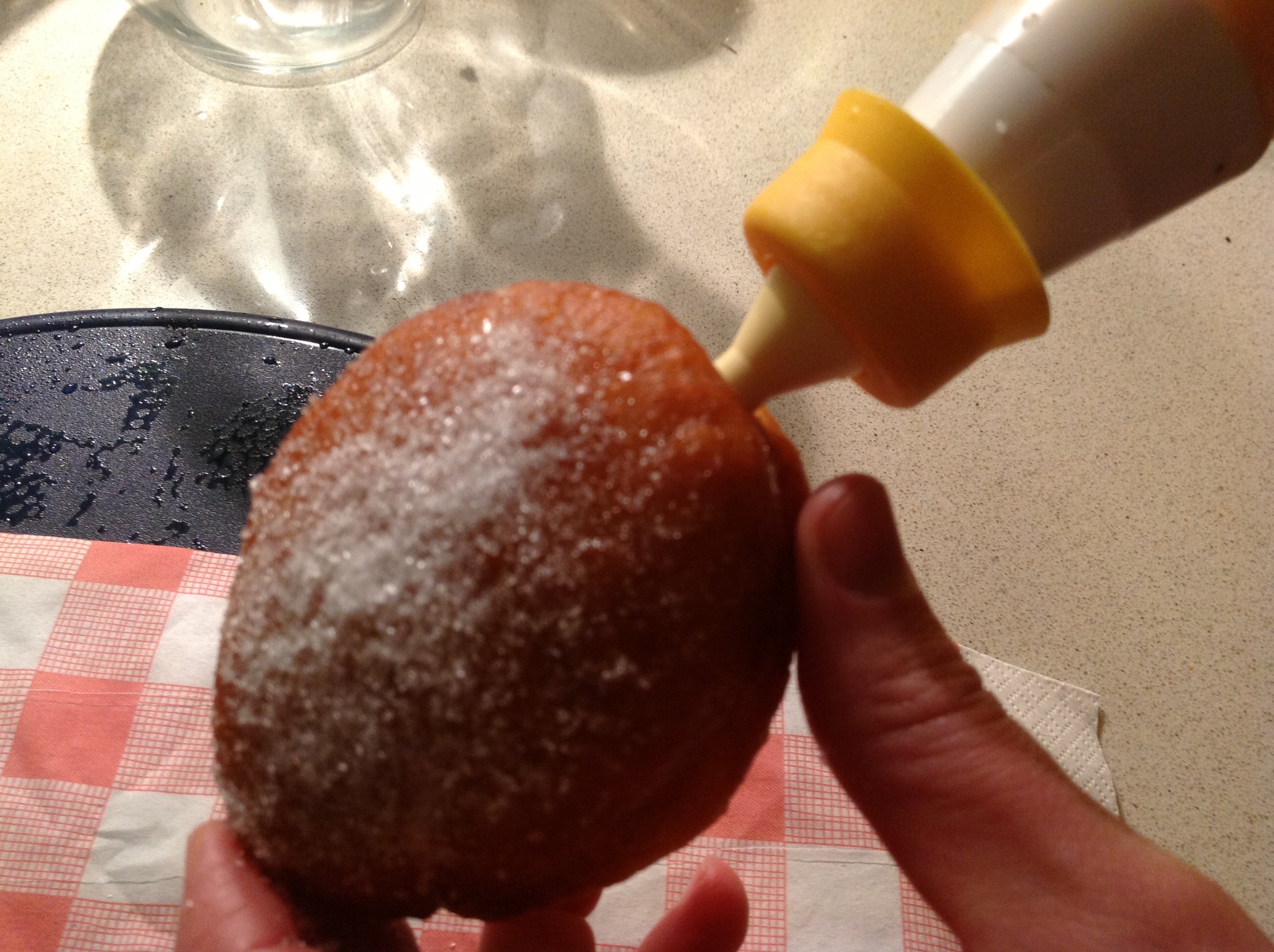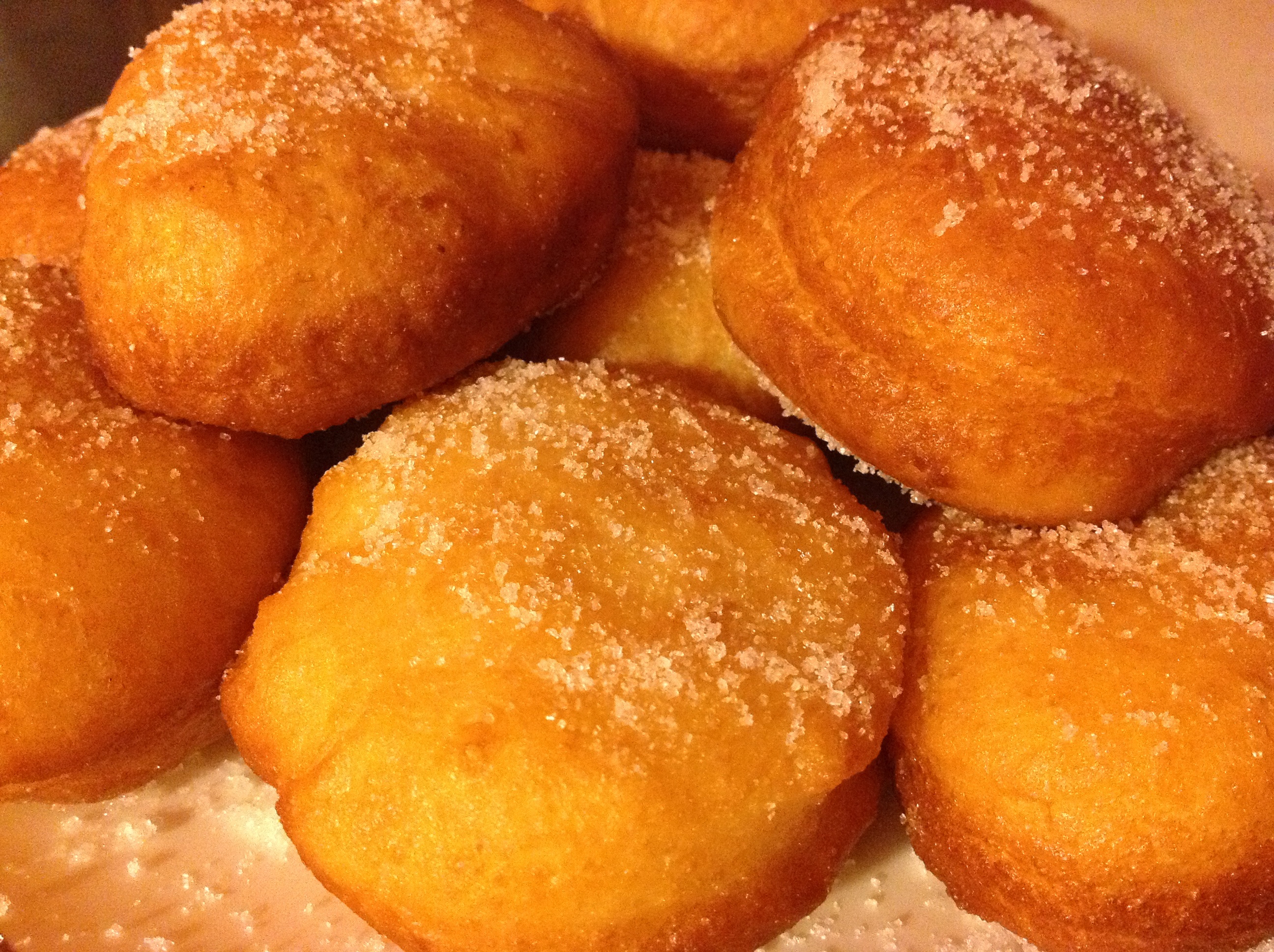 Fate in modo che la temperatura dell’olio rimanga costante, cuocendo 6-7 Frittelle alla volta: giratele per farle dorare e lasciatele asciugare su un piatto ricoperto di carta assorbente. Spolverizzate con dello zucchero a velo e servite, sia calde che a temperatura ambiente.