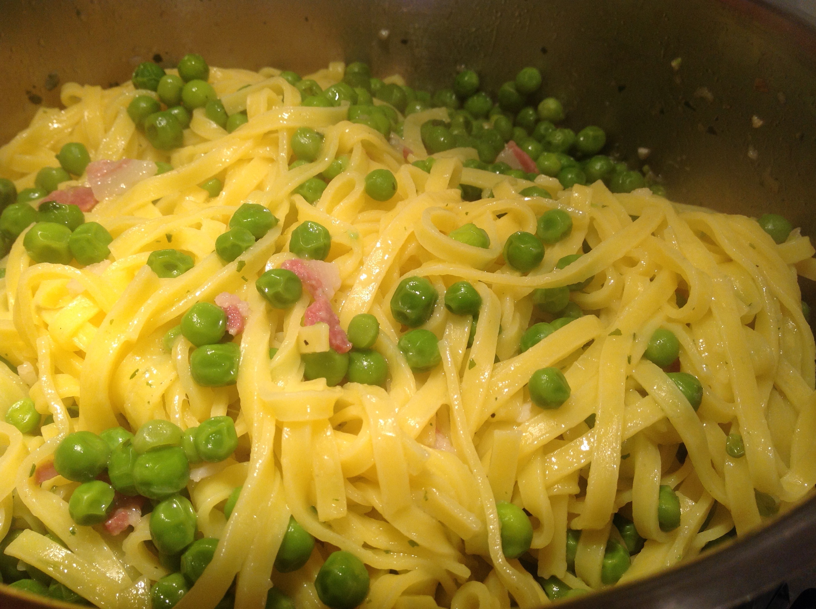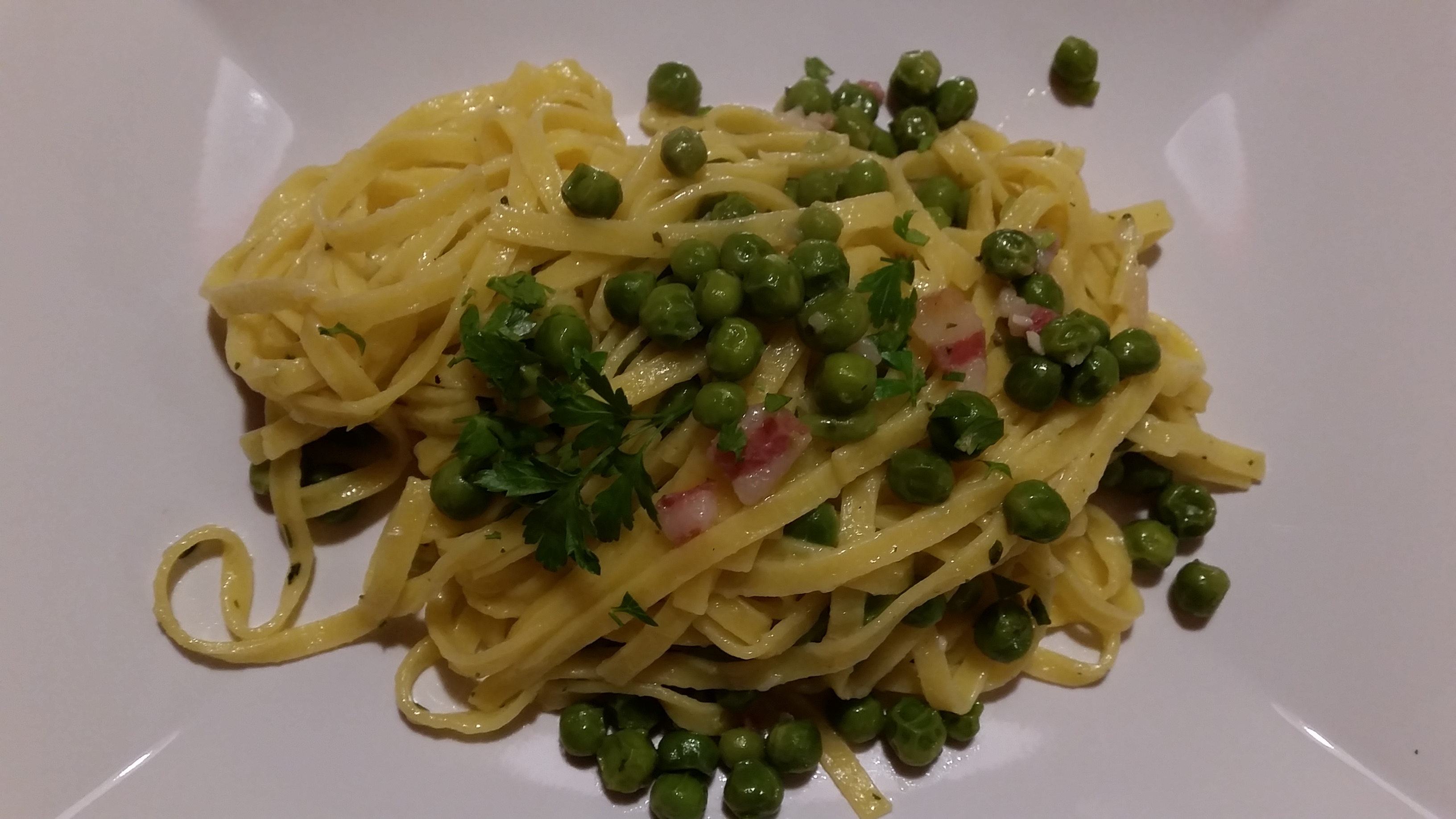 A casa abbiamo replicato la ricetta tipica: le tagliatelle con i piselli, o meglio, le “lasagne coi bisi”.