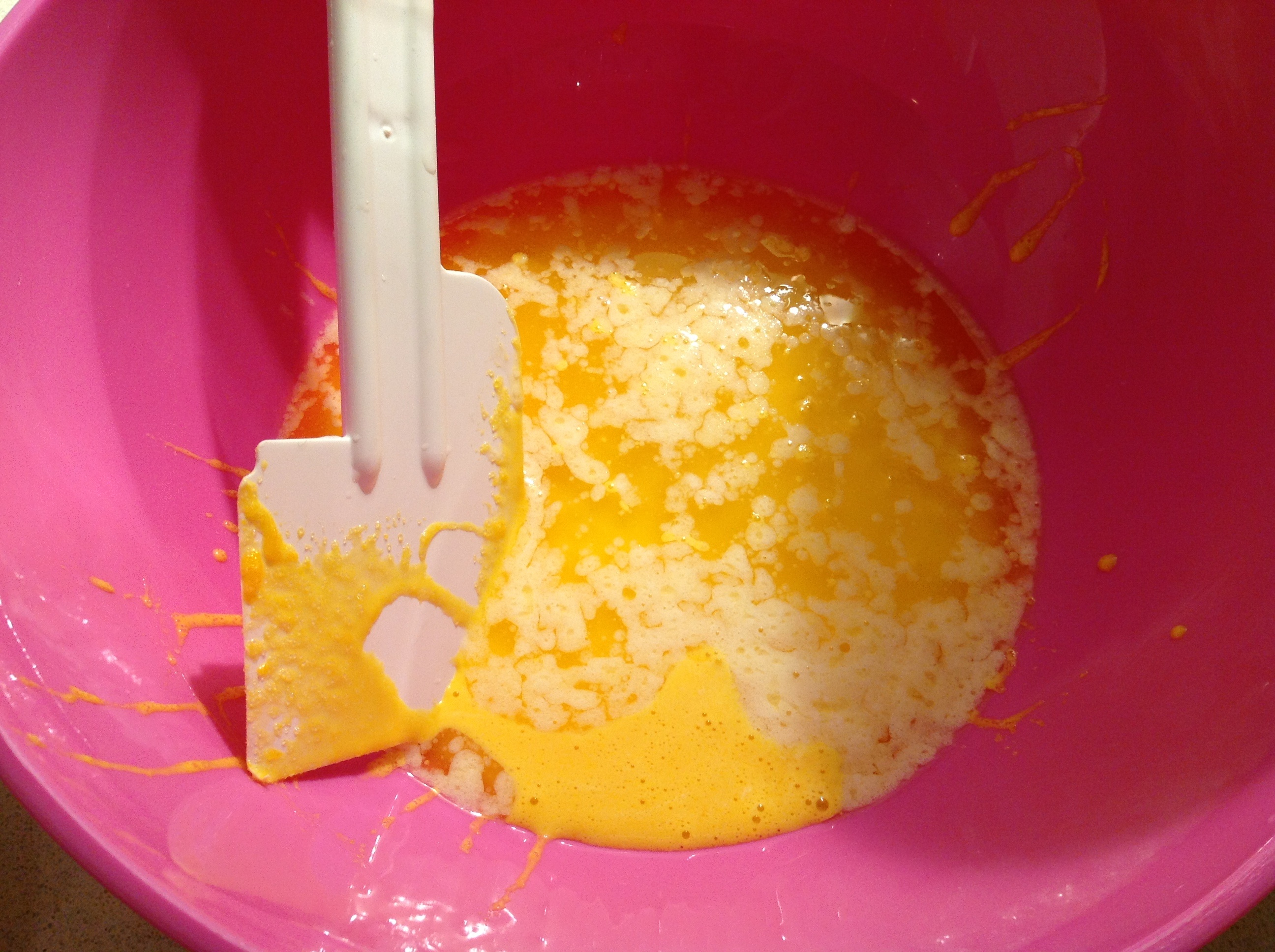 Per il frosting montate il mascarpone con lo zucchero a velo finché diventa sodo e aggiungete del colorante rosso e blu per creare il viola.