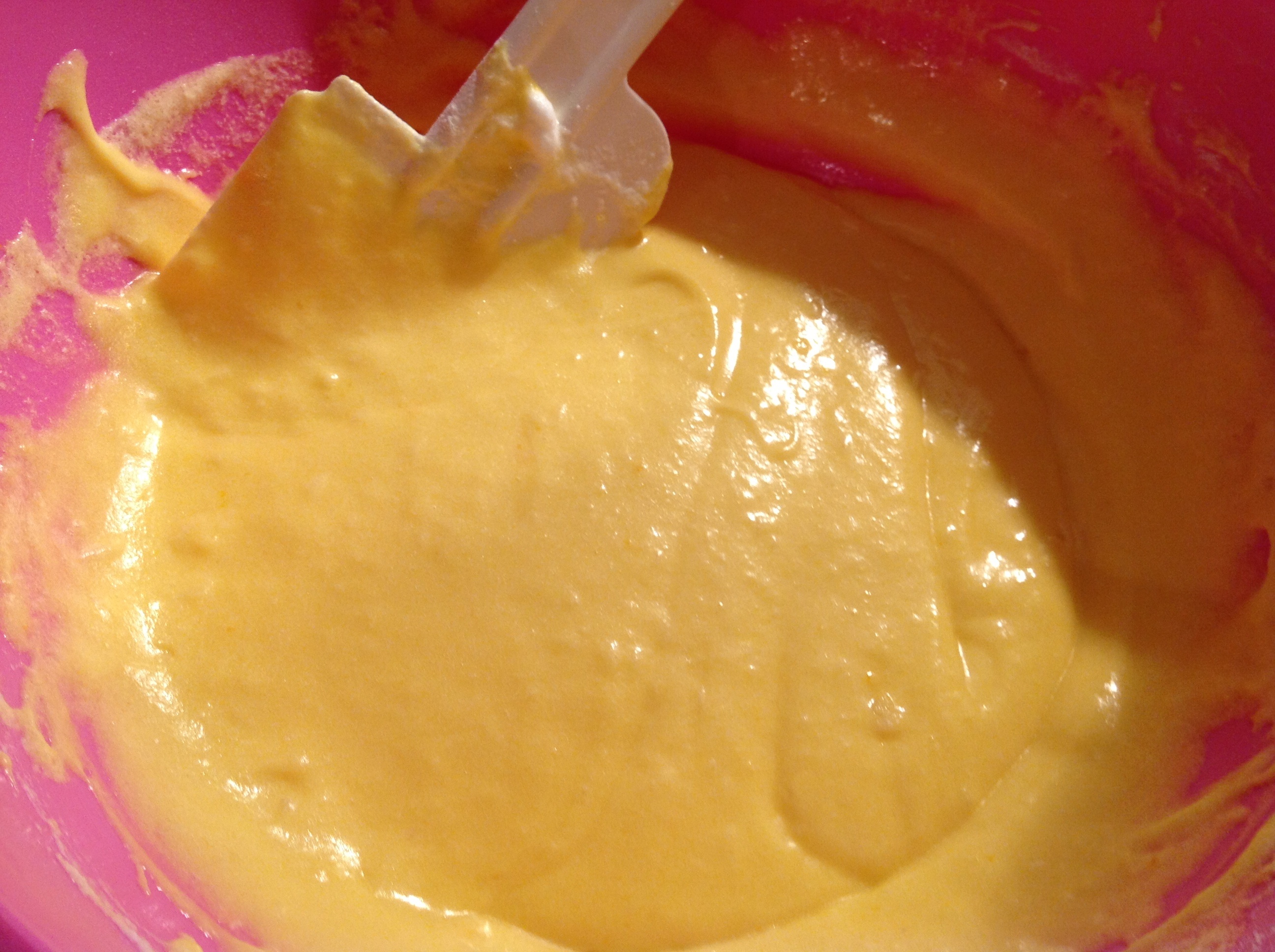 Mescolate il burro con lo zucchero fino ad ottenere una spuma bianca, unite le uova e quindi la farina setacciata con il lievito. Aggiungete il sale, il latte (dopo averlo fatto bollire con la bacca e lasciata in infusione per 15 minuti) e i semi di vaniglia, prelevati dalla bacca incisa con un coltellino.
